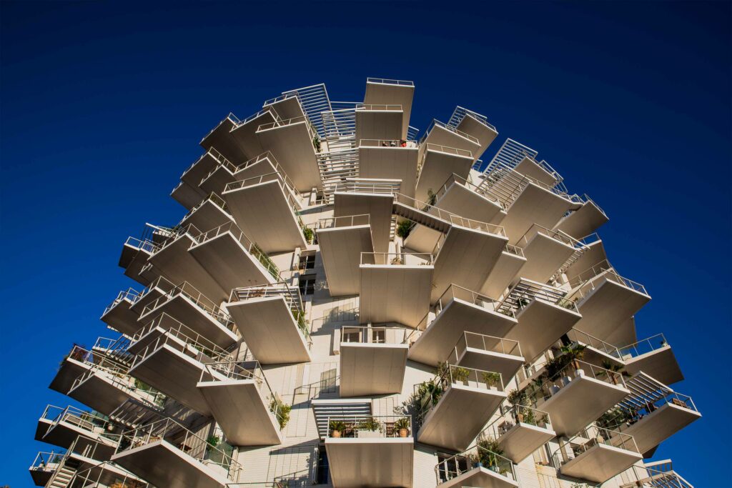 Photographies de L’Arbre Blanc à Montpellier, il s’impose comme une prouesse d’architecture contemporaine, un équilibre fragile entre nature et urbanisme, entre rêve et béton